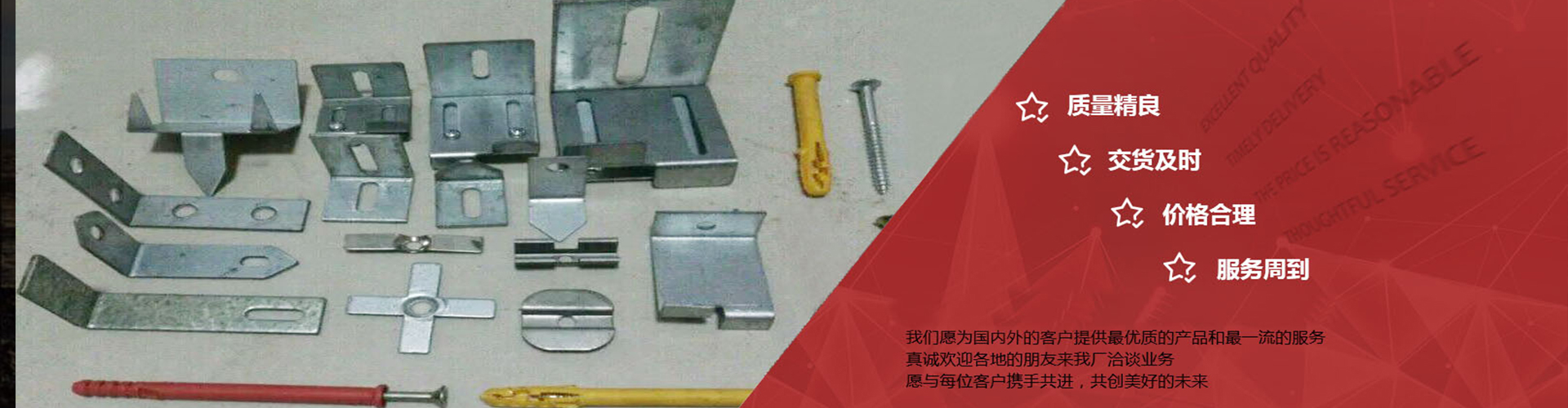 我們 坐落于中國河北省衡水市,歡迎惠顧!我們專業生產批發:保溫釘錨固件、幕墻配件、一體板錨固件、沖壓件等產品??筛鶕脩粢笥喿龈鞣N異形件等。產品銷往全國各地并遠銷國際市場,深受眾多客戶的認可和好評。我們將以完善的服務體系,為客戶提供更加優質的產品。 以科技為依托,以質量為核心,以研發創新為先導,本著以人為本,...